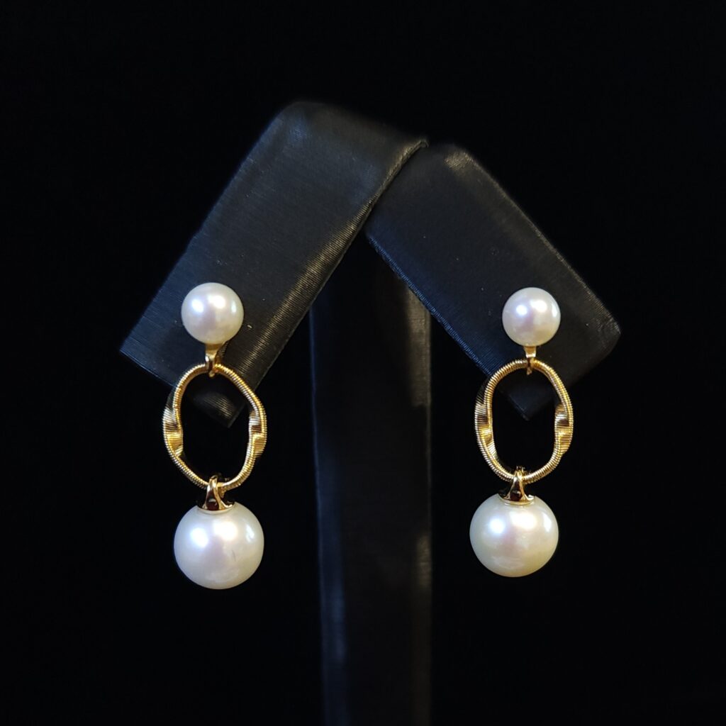 These gorgeous earrings are 18Kt yellow gold Marco Bicego dangle pearl earrings. These earrings are perfect for your next formal/semi-formal event! They would be stunning for a bride on her wedding day! Well…they would be stunning for any occasion! #morethanakiss #estatejewelry #marcobicego