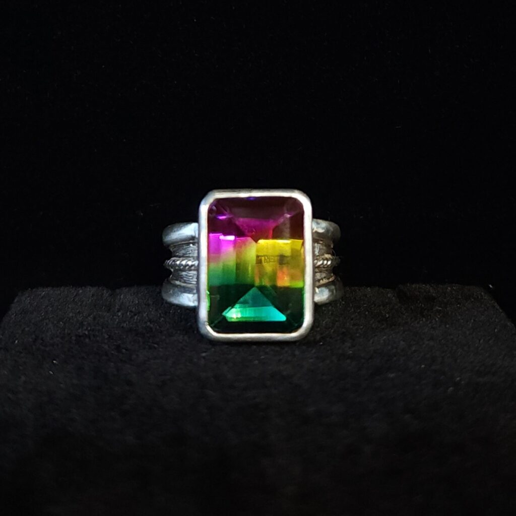 We had a similar ring as part of our jewelry donation drawing for our 22nd Anniversary Celebration fundraiser for the VFW. That ring got so much attention, I decided to bring in another! The colors in this ring are so vibrant! This ring is set in .925 sterling & .999 fine silver by one of our local jewelry artists. Don’t miss out on this beautiful & unique ring! #morethanakiss #localjewelryartist
