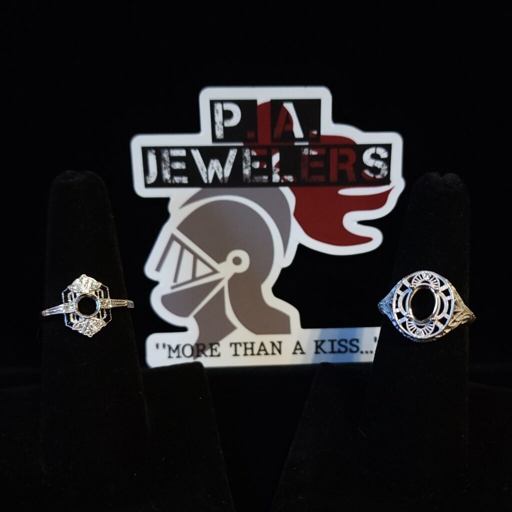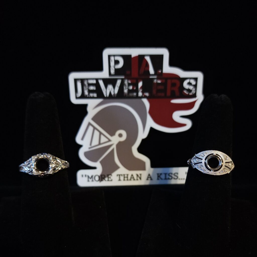A number of months back, we purchased some new production vintage-look ring mounting. All are in an art deco style and/or filigree designs. All are white gold, three are 14kt, and one is 18Kt. I have not had the time to spend other design of what I wanted each to become in its final state. I was able to carve out a few hours this week to get these four designed! All four will go to our jeweler next week…and I cannot wait for them to come back! So stay tuned… #morethanakiss #PAJewelersCustomDesign