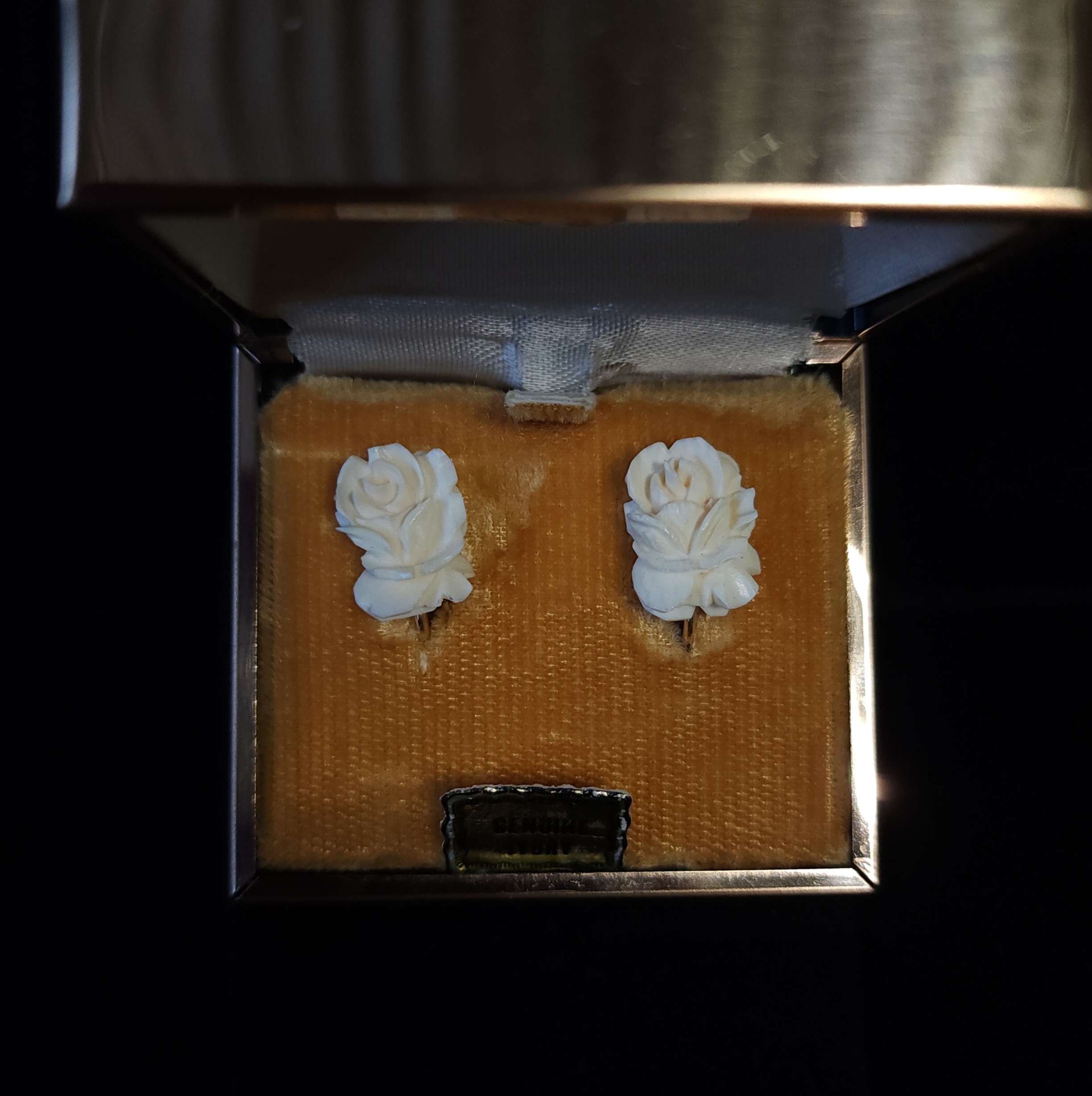 Here is another example of “you never know what will come through our door”! These are gorgeous antique carved ivory earrings. The ivory is genuine and carved in the shape of roses. The earrings are clip-on and in the ORIGINAL box! #morethanakiss #antiquejewelry #carvedivory #carvedivoryjewelry #carvedivoryearrings