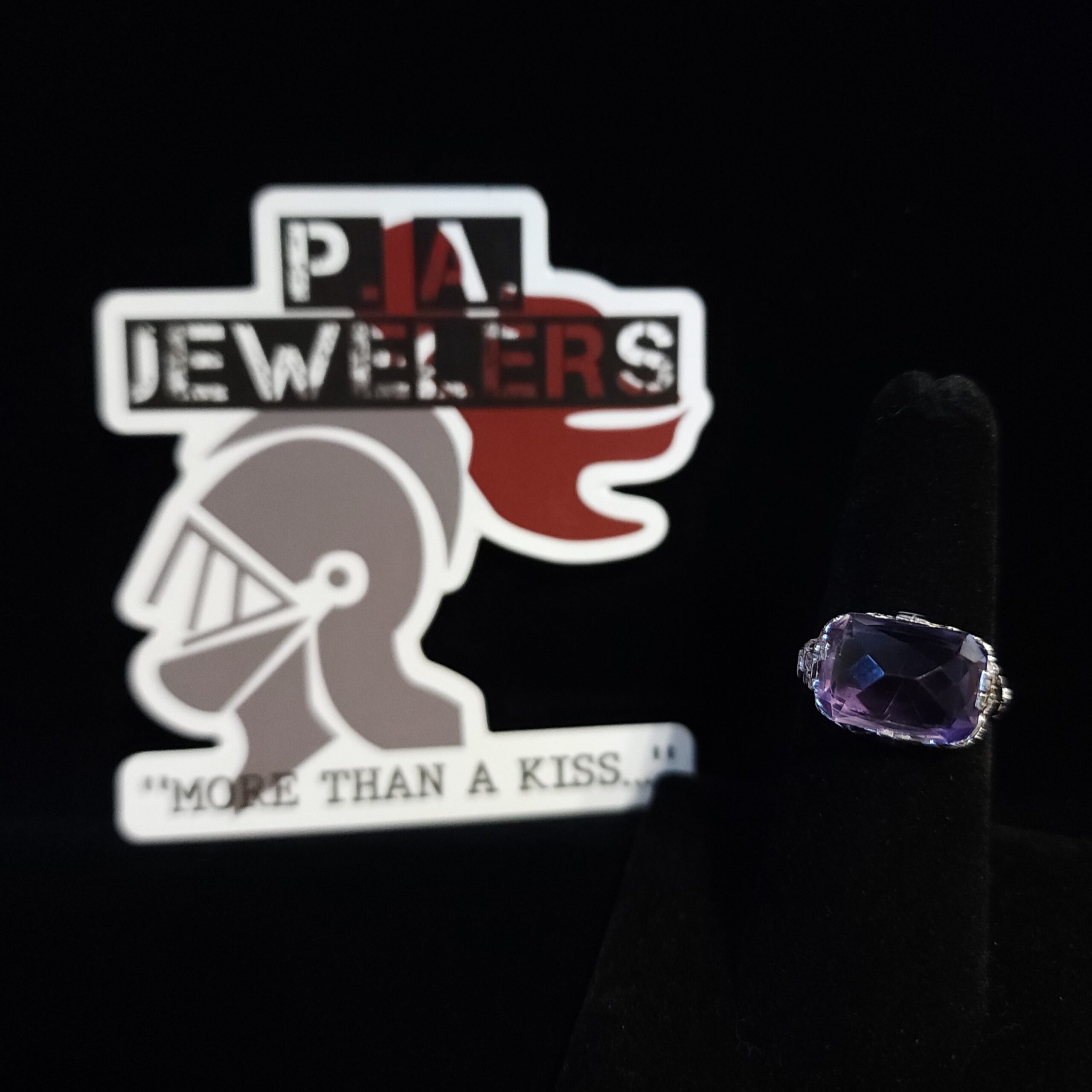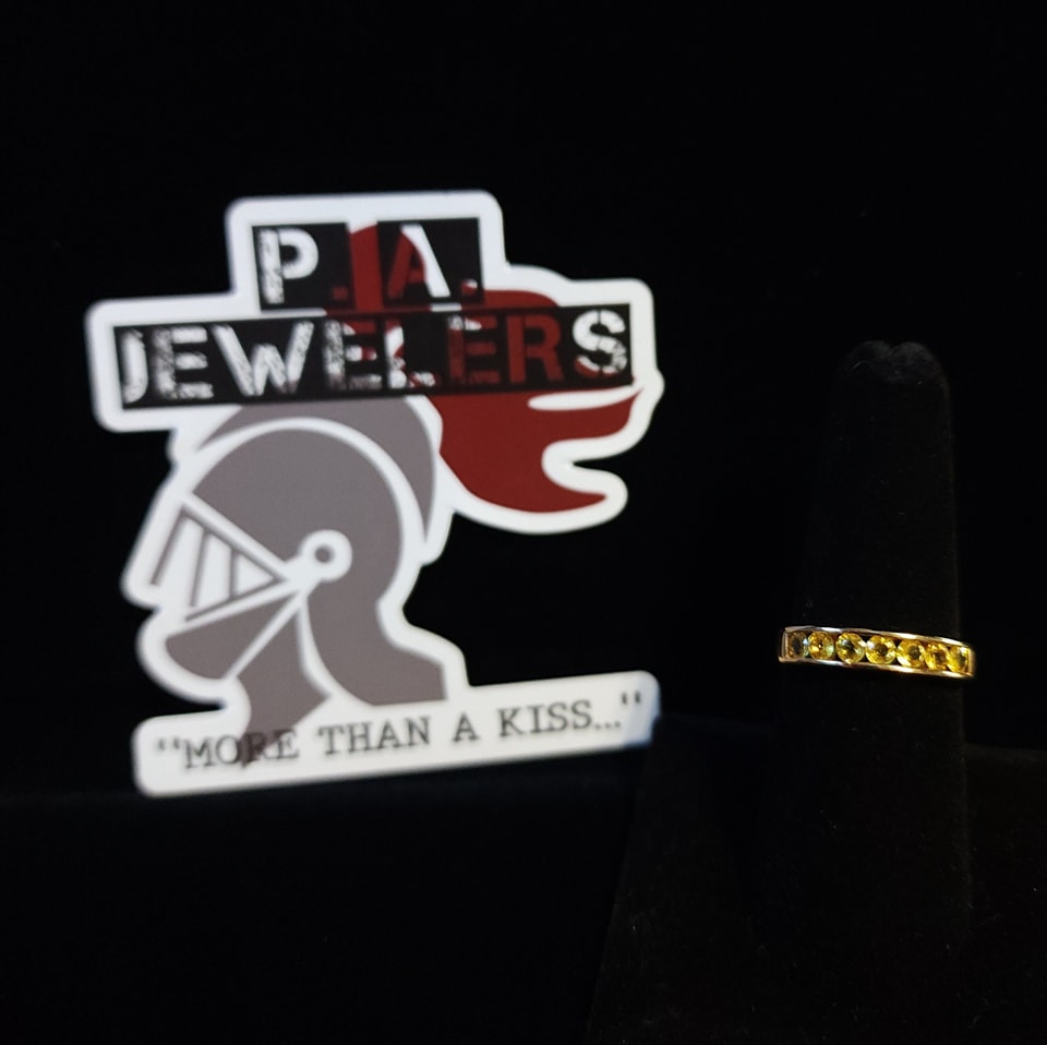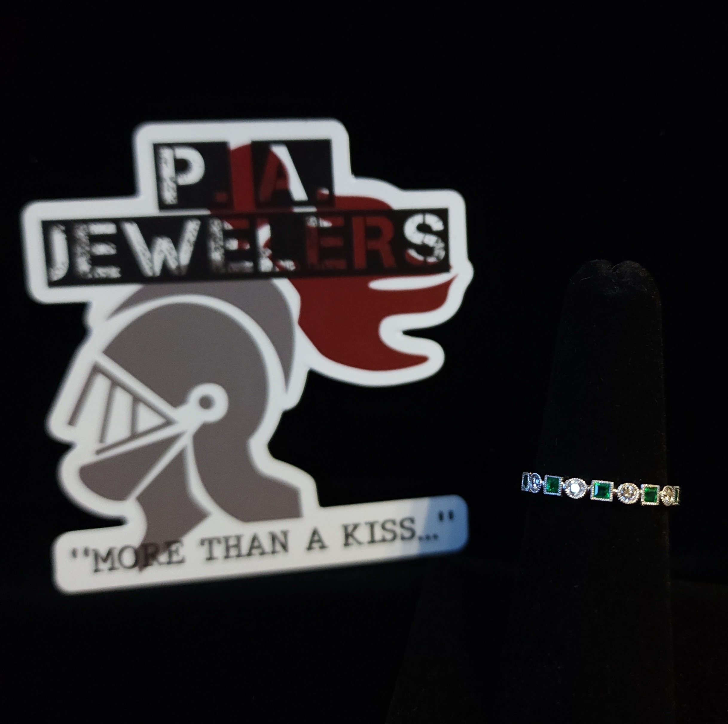 Set in 14Kt white gold, this beautiful band has .25Ct total weight of princess cut emeralds & .10Ct total weight of round diamonds. The ring design of alternating round & square; green & white is a gorgeous modern take on an emerald & diamond band!...