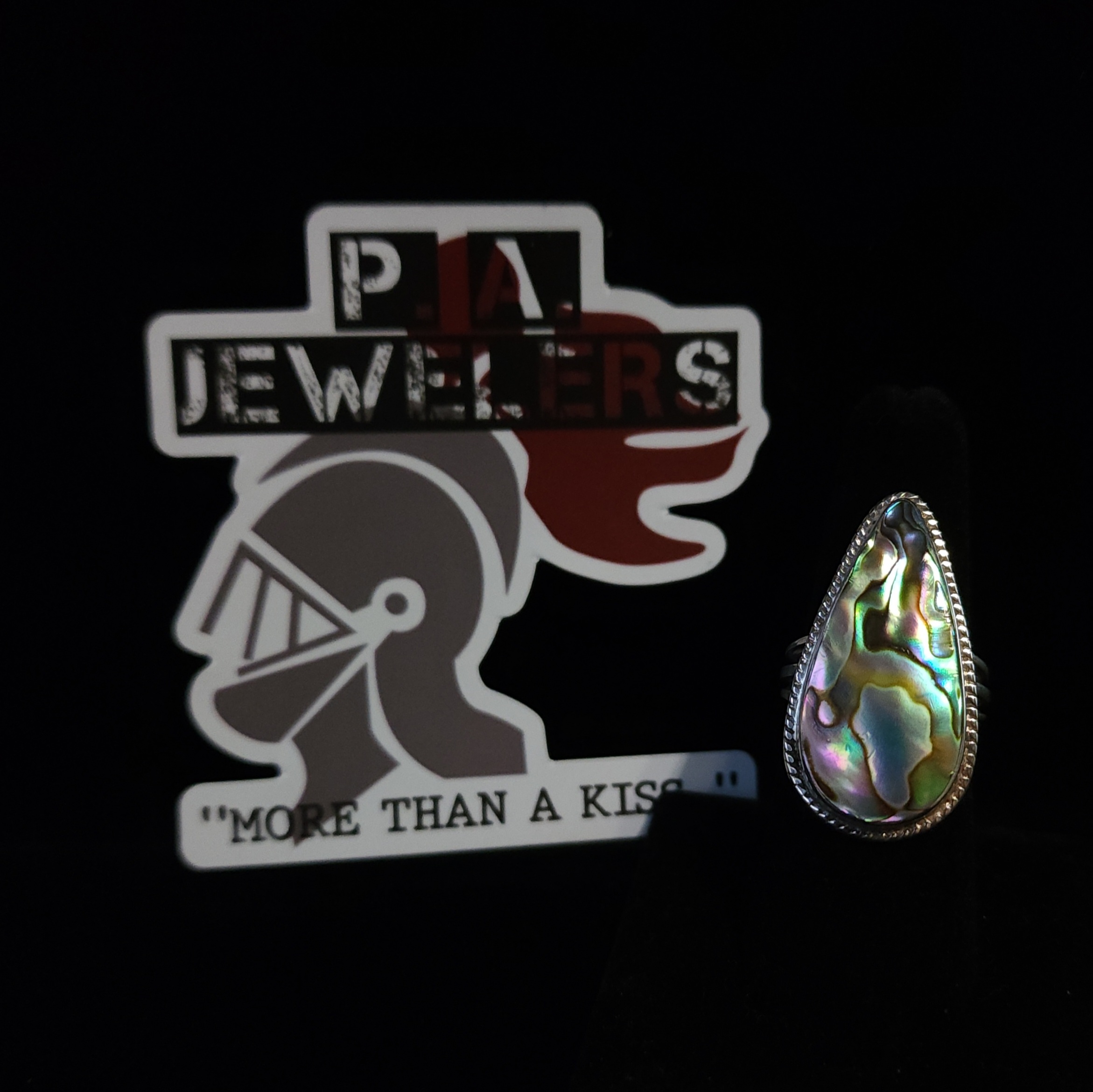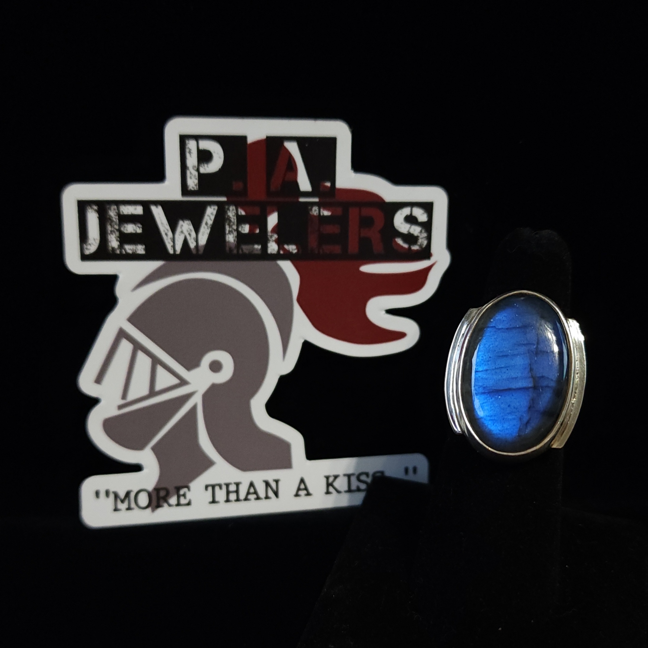 Typically, we see the iridescence of labradorite in gray, brown, green, or even pale blue colors. This piece is an absolute brilliant deep blue…and I am in love with it! Set in .999 fine & .925 sterling silver by one of our local jewelry artists....