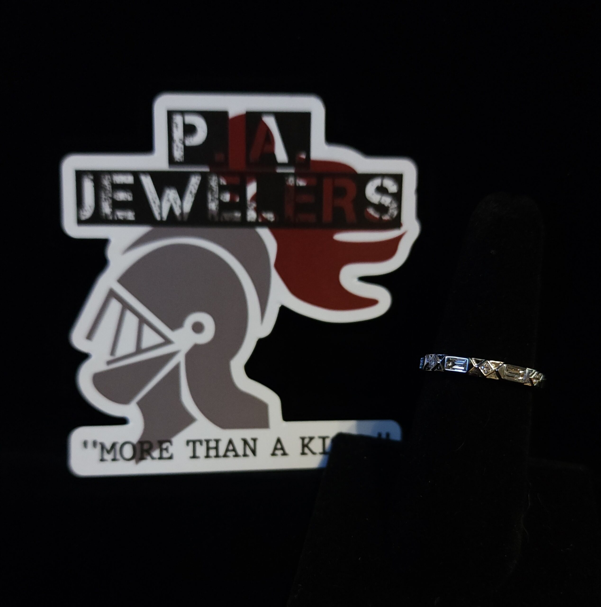 Set in 14Kt white gold, this diamond band has .45Ct total weight of diamonds. But what makes this diamond band stand out is the detail of the design. The ring has uniquely mounted round diamonds in between baguette diamonds (which are set horizontally). This ring...