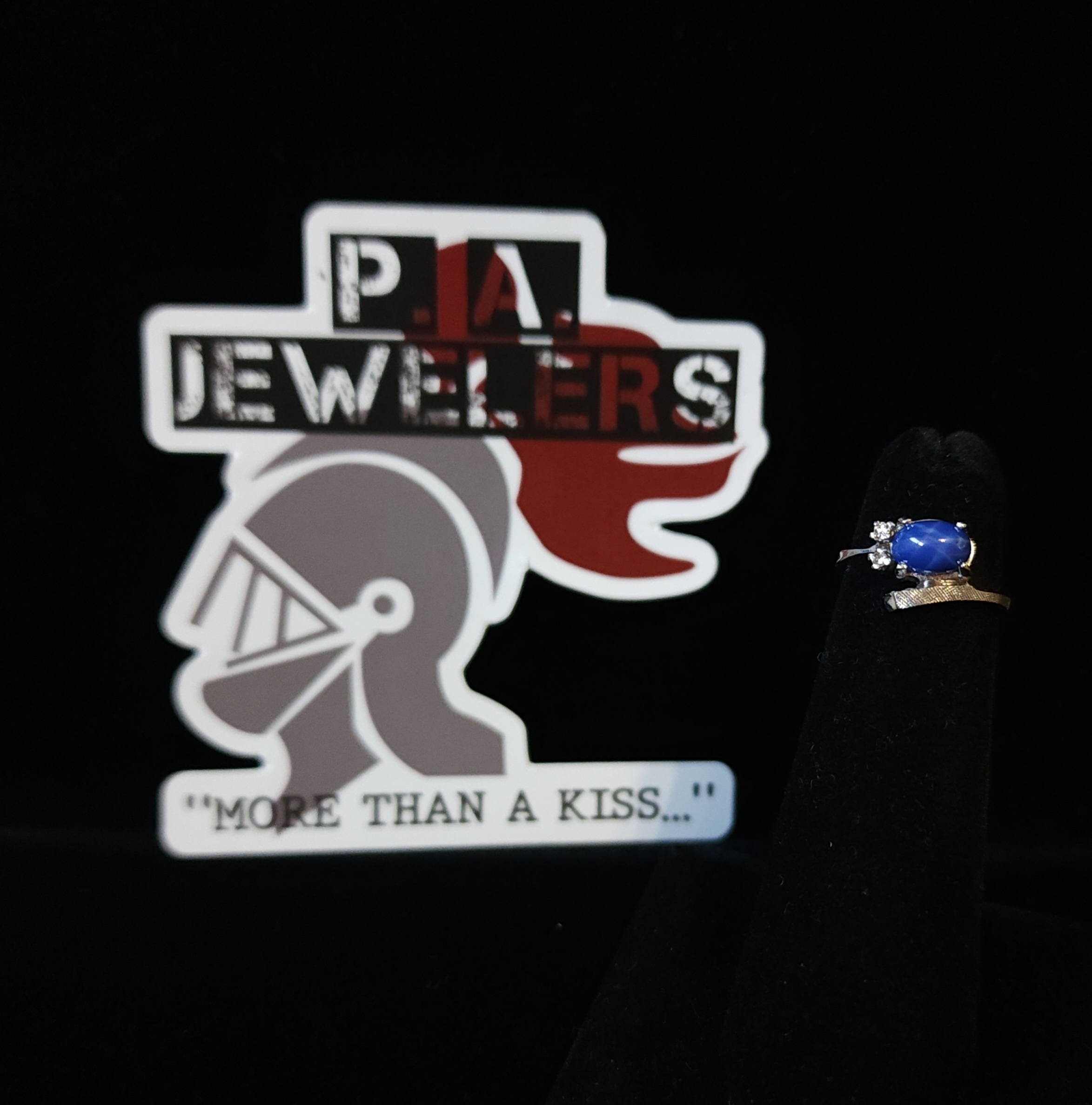 Set in 10Kt white gold, this vintage ring has an oval blue star sapphire with diamond accents. The unique thing about this ring is that the oval star sapphire is mounted east to west, rather than the traditional oval mounting of north to south. #morethanakiss...