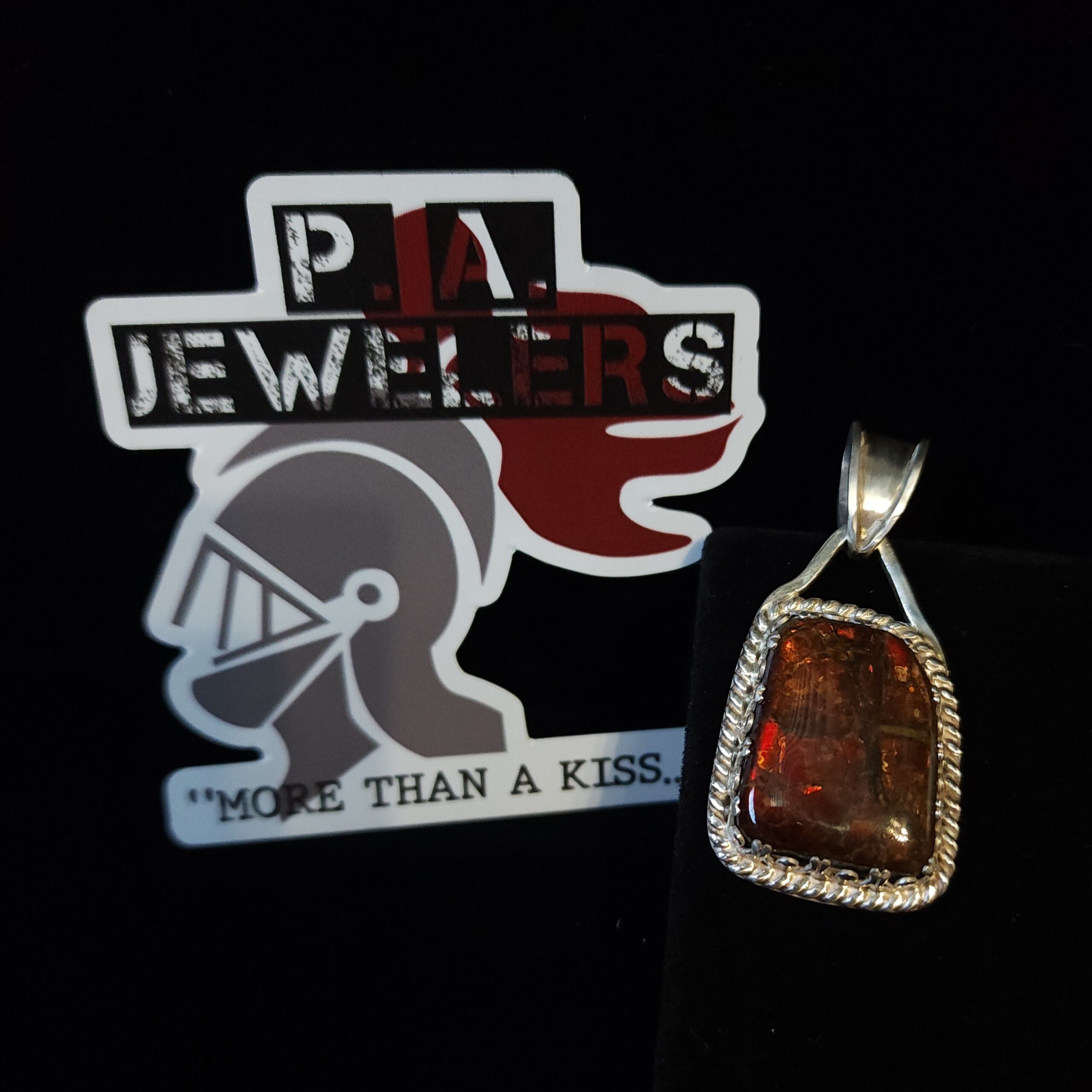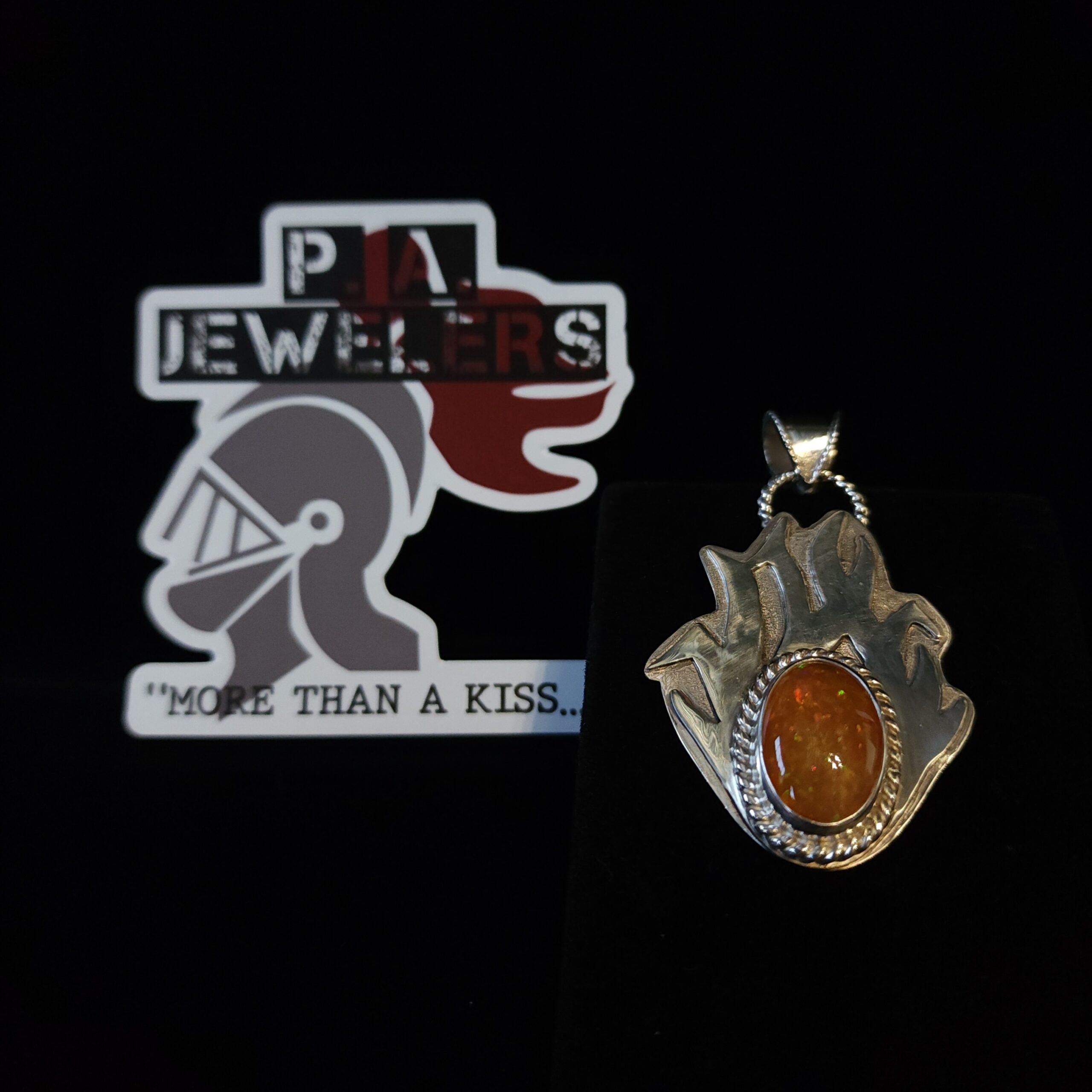 This massive opal has so much color and is 8.7 carats! It was set in a pendant by one of our local jewelry artists. The pendant is .999 fine & .925 sterling silver, with a fire design to represent the fire in this gorgeous opal!...