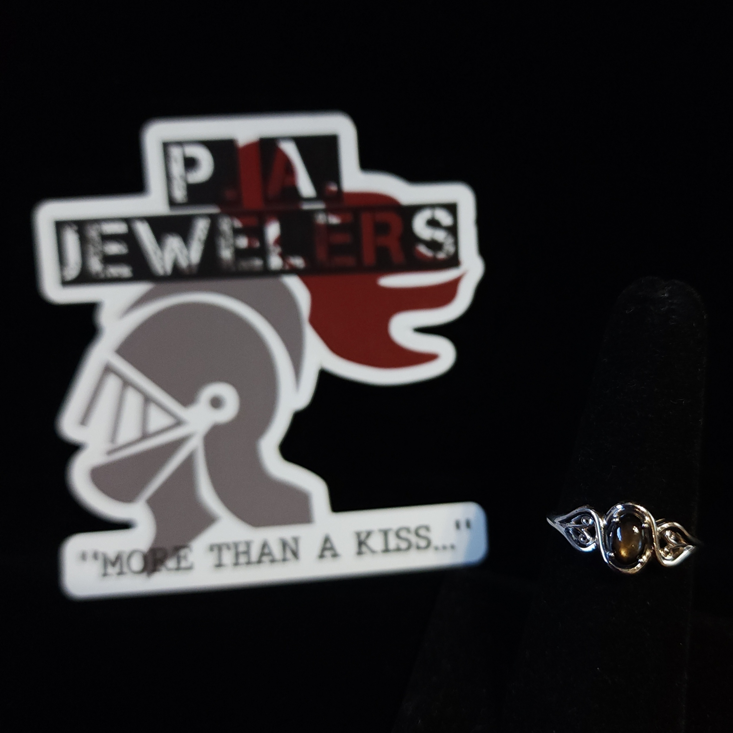 This is one of the first P. A. Jewelers custom designs! Set in 14Kt white gold, the infinity-style design of this ring surrounds a cabochon black star sapphire. There is something about star sapphires that are captivating...