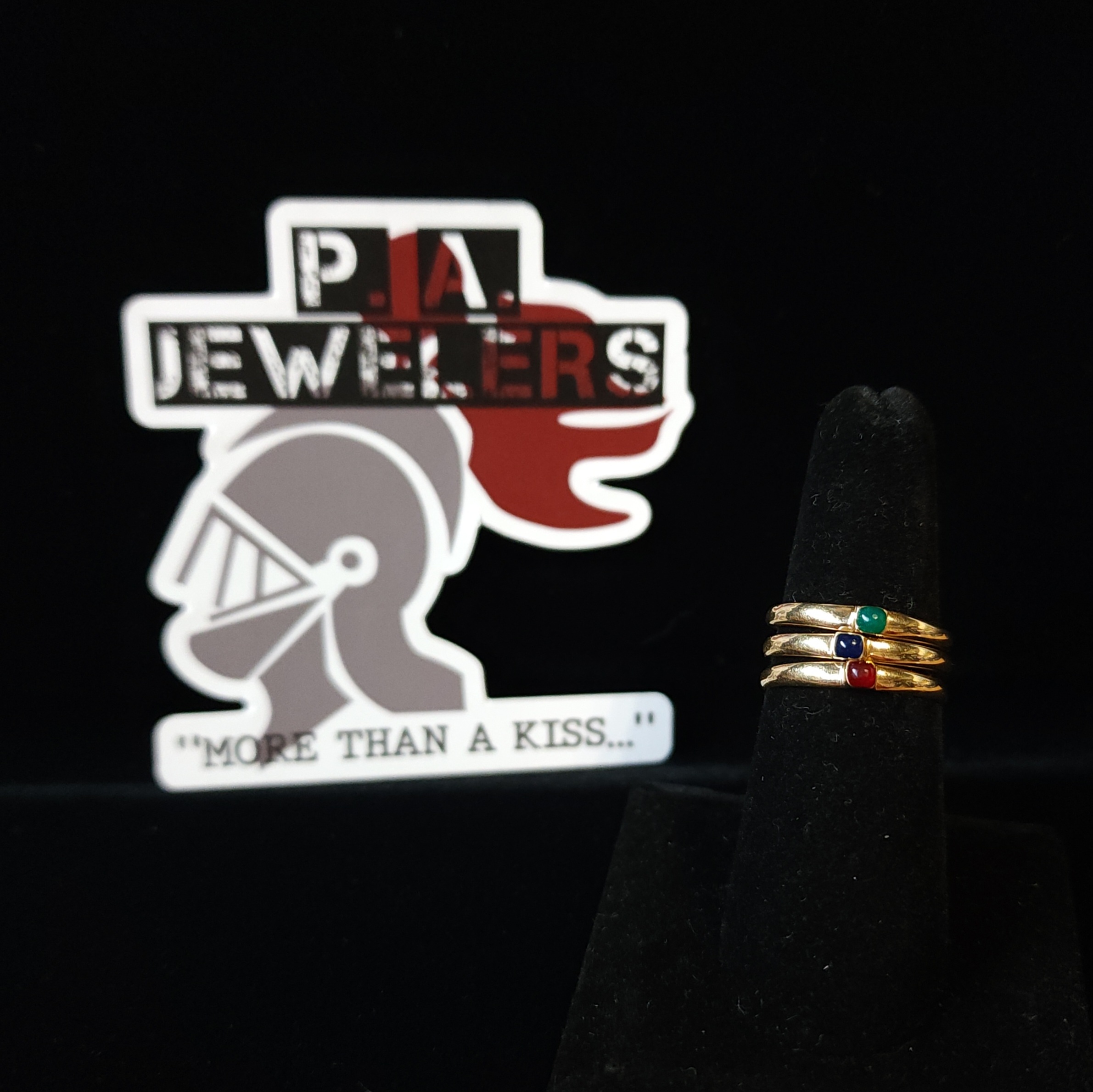These 3 rings are absolutely adorable, each set in 14Kt yellow gold. And each with a cabochon precious gemstone…ruby, sapphire, emerald. These rings are priced separately, but look fantastic stacked! ❤️???????? #morethanakiss #estatejewelry #rubysapphireemerald ...